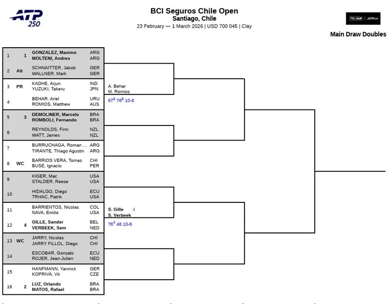 Cuadro de dobles del ATP Santiago 2026