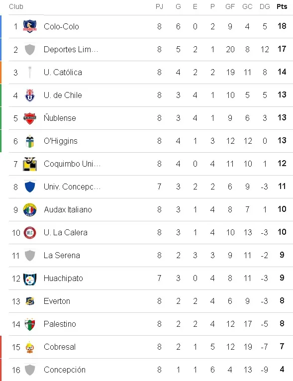 Los dirigidos por Fernando Ortiz llegaron a los 18 puntos, superando por una unidad a Deportes Limache. El podio lo cierra Universidad Católica, con 14.