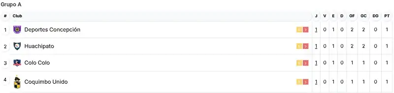 Respecto al Grupo A, se registraron dos empates en la primera fecha: Deportes Concepción igualó 2-2 con Huachipato en Talcahuano, mientras que Colo Colo empató 1-1 con Coquimbo Unido en el Estadio Monumental.