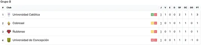 Por su parte, los cruzados vencieron 2-1 a Universidad de Concepción en el Claro Arena y están en el primer lugar del Grupo B, ya que Cobresal y Ñublense igualaron 1-1 en el norte.