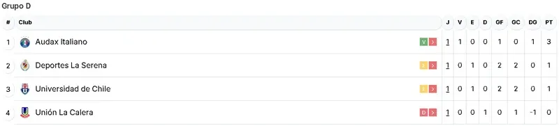 El cuadro itálico derrotó 1-0 a Unión La Calera en condición de visita y lidera el Grupo D, tras el empate 2-2 de Universidad de Chile con Deportes La Serena.