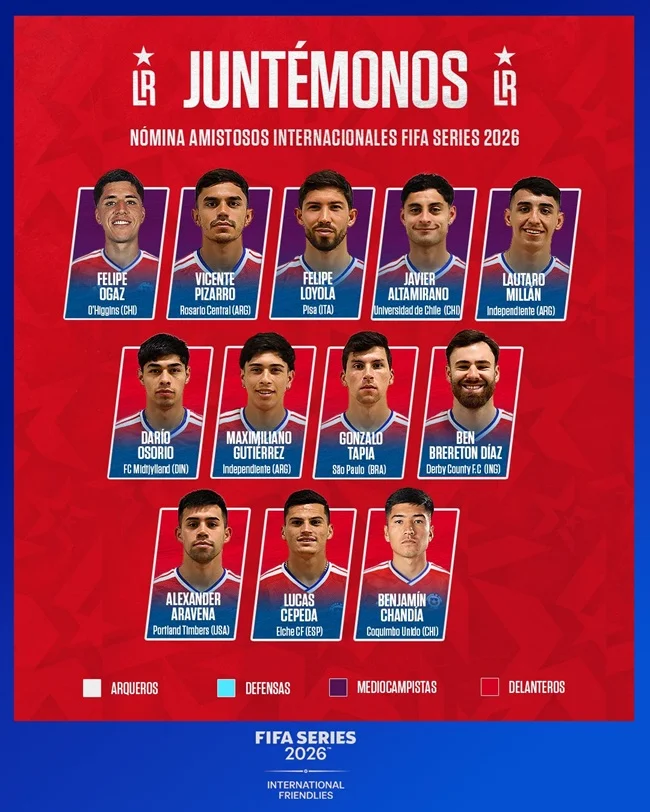 La selección chilena dio a conocer este lunes la nómina para los partidos amistosos de marzo ante Cabo Verde y Nueva Zelanda, en el marco del FIFA Series.